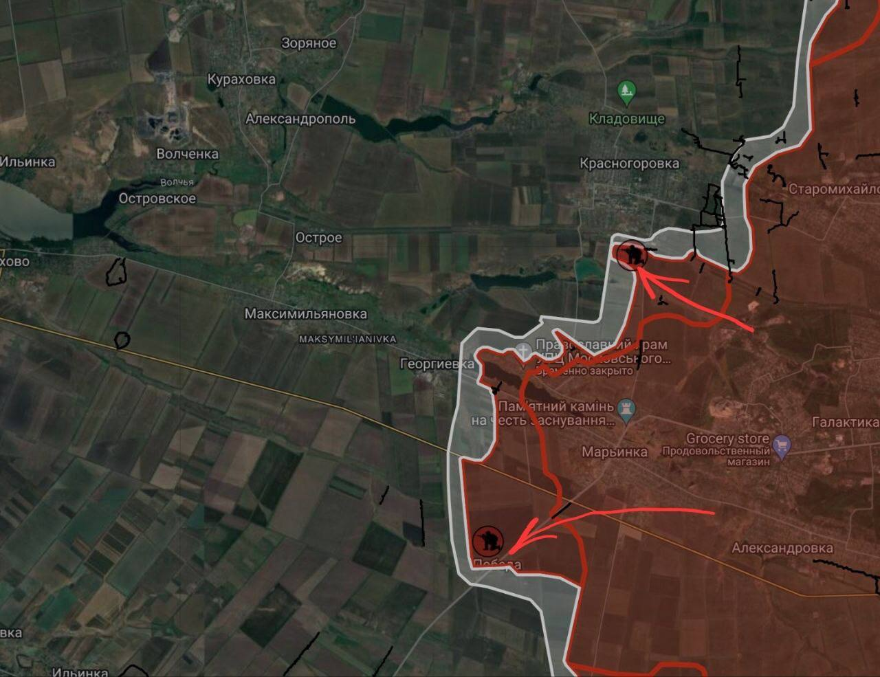 Trên Pokrovsky: Có các trận chiến ở Novokalinovo, phần phía nam của Ocheretino và theo hướng của chùm Domakha trên lãnh thổ của những vườn cây ăn trái bị bỏ hoang ở phía nam Pervomaisky. Ở phía tây Novomikhailovka, quân Nga tiến vào khu vực rộng tới 1,2 km và sâu 1,3 km, chiếm quyền kiểm soát phần lớn ngôi làng. Giao tranh tiếp tục diễn ra ở vùng ngoại ô phía Tây. Giao tranh ác liệt vẫn tiếp diễn ở Georgievka và Krasnogorovka. Ở Netailovo đang có những trận chiến sắp diễn ra. Tình trạng tương tự cũng xảy ra trên đường đến Umansky. Tàn quân của Lực lượng vũ trang Ukraine bị đánh đuổi khỏi Semyonovka.