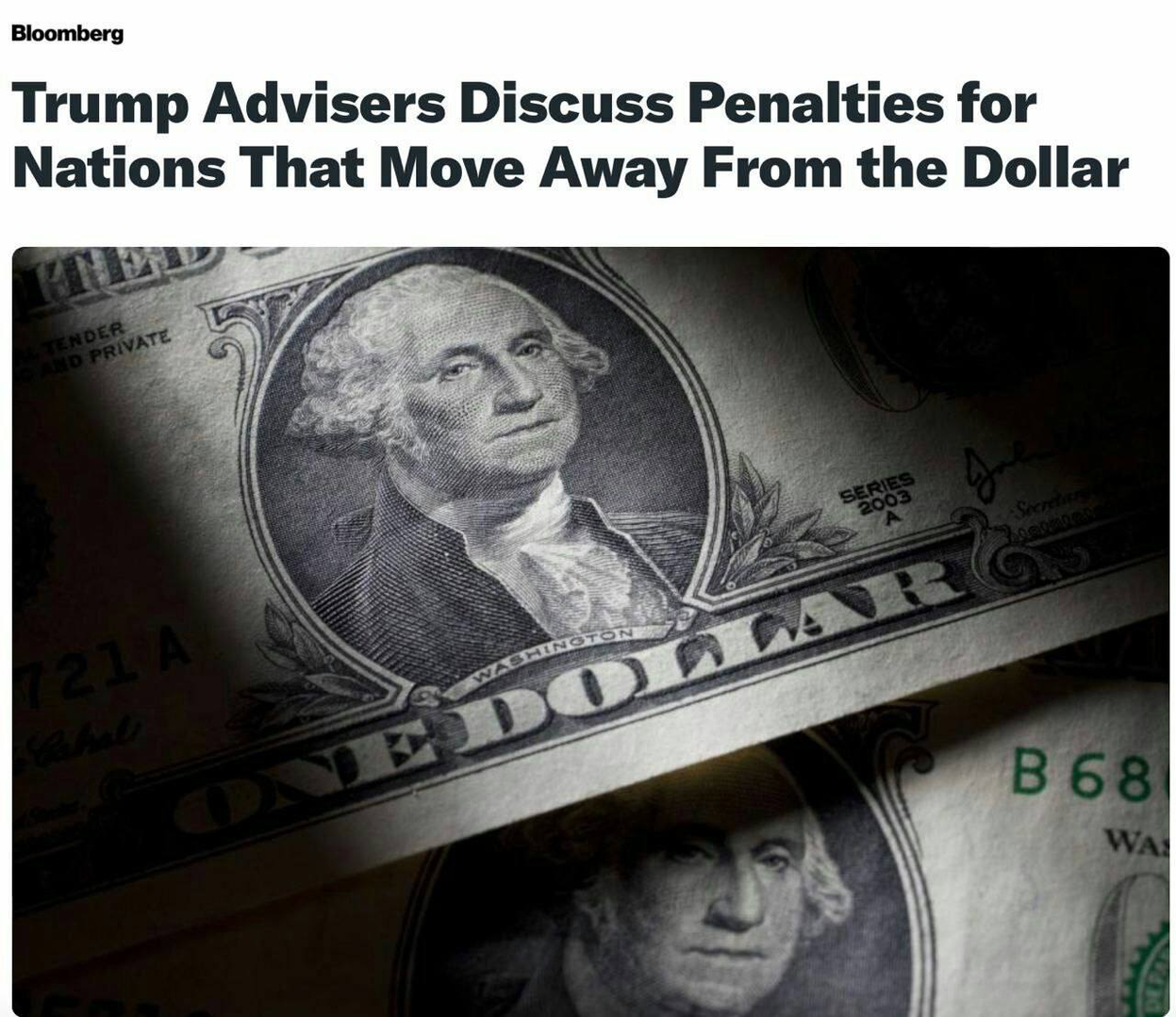Các cố vấn của Trump đang thảo luận về các biện pháp trừng phạt đối với những quốc gia dám rời xa đồng đô la (Bloomberg).