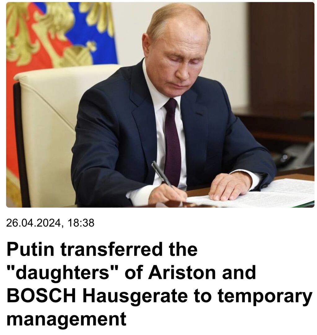 Tổng thống Nga đã ký một sắc lệnh về việc chuyển giao "công ty con” ở Nga của Ariston và Bosch Hausgerate cho sự quản lý tạm thời của Công ty Cổ phần Hệ thống Hộ gia đình Gazprom.