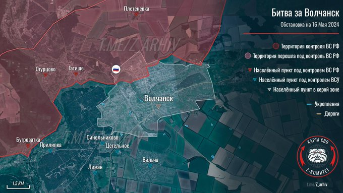 Tại Volchansk, Lực lượng vũ trang Nga đã tiến sâu 1 km và tiếp tục tiến về phía đông thành phố.