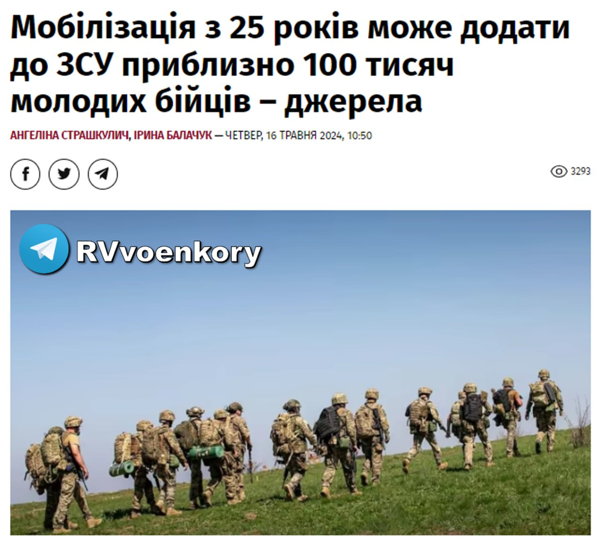 ▪️Vào tháng 4, Zelensky đã ký luật hạ giới hạn độ tuổi được huy động từ 27 xuống 25 tuổi.
