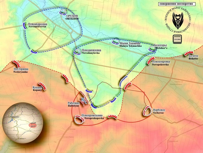 Bộ Quốc phòng Nga hôm 15/5 chính thức tuyên bố giành lại quyền kiểm soát Robotine. Sáng nay 16/5 theo giờ địa phương, các binh sĩ Nga tiếp tục xuyên thủng hàng phòng ngự của đối phương ở phía tây bắc Verbovoy, đồng thời tấn công vào khu vực Malaya Tokmachka.