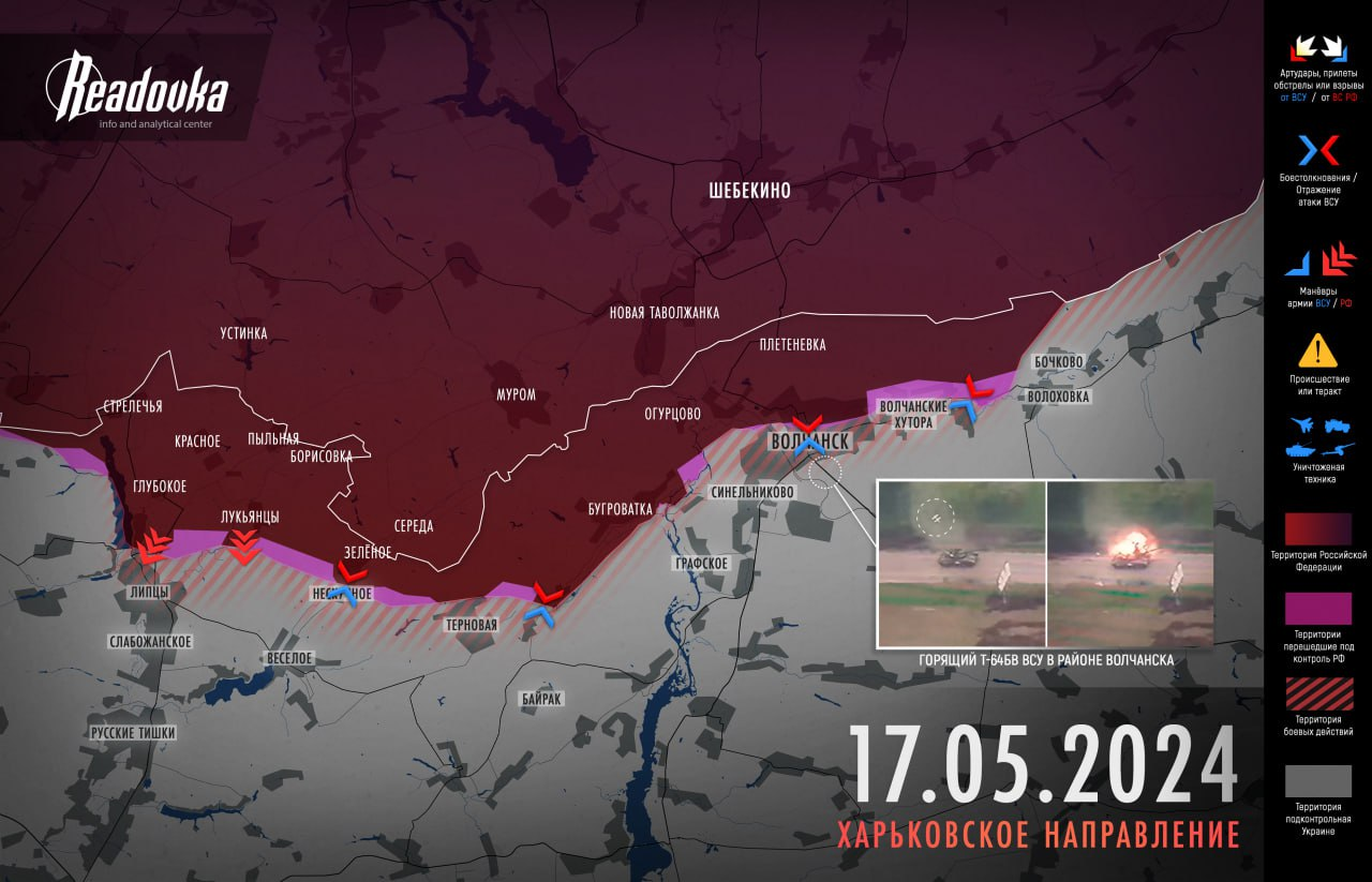 Tại các khu vực Vovchansk và Lyptsi, lực lượng Nga đã giành được nhiều lãnh thổ hơn nữa. Một số nguồn tin cho rằng binh lính Nga đang chuẩn bị tấn công Sumy, ngay bên kia biên giới với tỉnh Sumy.