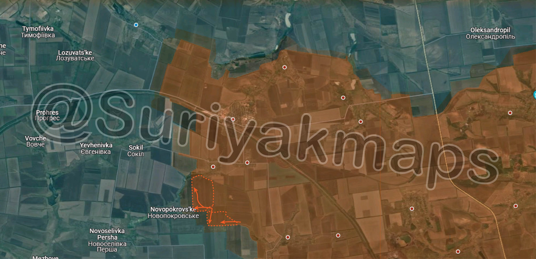 Tình hình phía bắc và phía tây Avdivka: Quân đội Nga đã có những bước tiến mới về phía Novopokrovske và hiện mũi xung kích tiên phong của họ chỉ cách những ngôi nhà đầu tiên của địa phương chưa đầy 1 km.