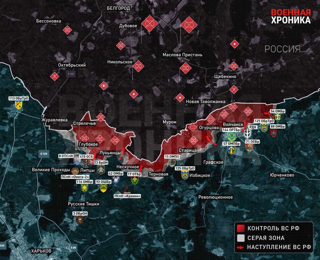 Tại Volchansk, sau khi bắt đầu giao tranh trong thành phố và sự chuyển hướng tấn công của Lực lượng Hàng không Vũ trụ Nga về phía nam, các trận chiến bên sườn bắt đầu. “Miền bắc” có những thành công ở khu vực các làng Zybino và Pokalanoye ở phía đông thành phố. Một cách gián tiếp, điều này cho thấy rằng kế hoạch ban đầu của “miền bắc” nhằm cô lập và bao vây Lực lượng vũ trang Ukraine ở Volchansk vẫn còn hiệu lực, và để đáp trả kế hoạch đó, Bộ chỉ huy Lực lượng vũ trang Ukraine có thể sẽ phải sử dụng thêm lực lượng.