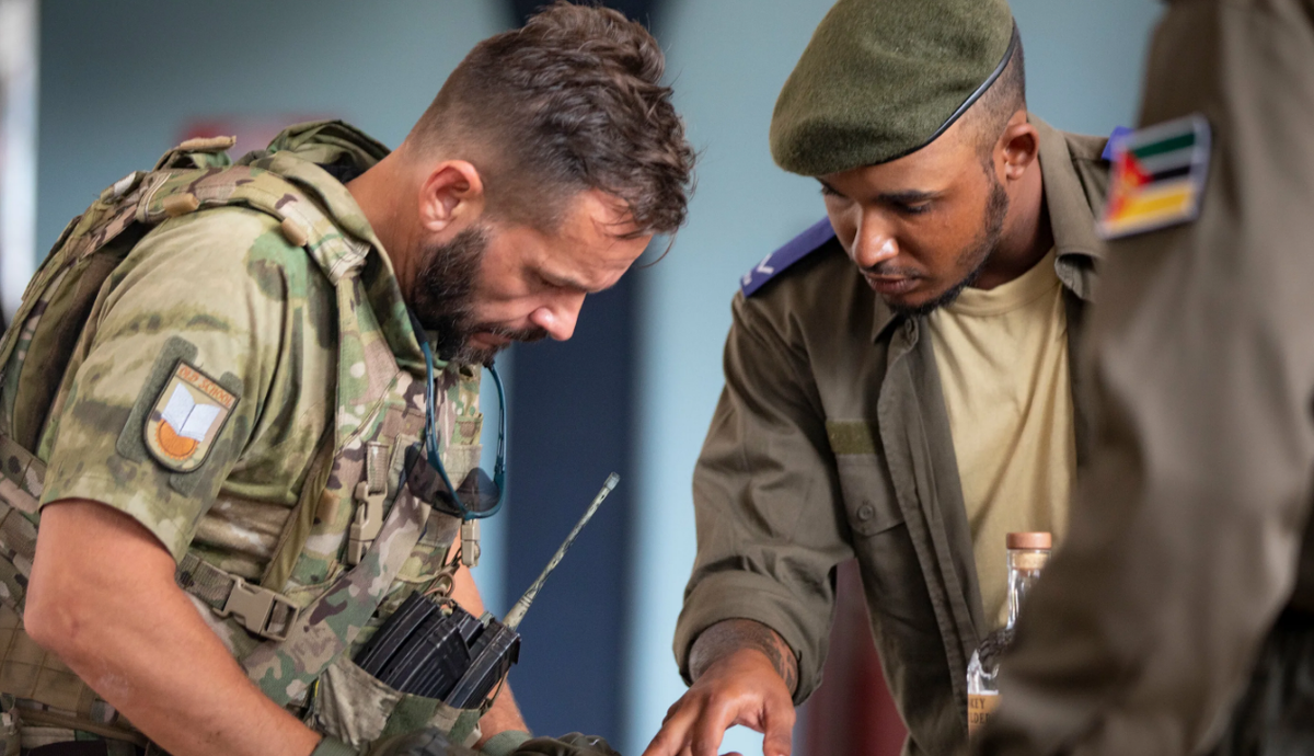 Một huấn luyện viên người Nga với chiếc chevron không theo luật định cảm động đang lên kế hoạch thoát khỏi cuộc chiến với một sĩ quan CAR. Kết quả của công việc này là hơn 50 khu định cư được giải phóng từ năm 2019 đến năm 2024. Quân đội CAR chưa bao giờ đạt được thành công như vậy trong lịch sử. Ảnh của AFP