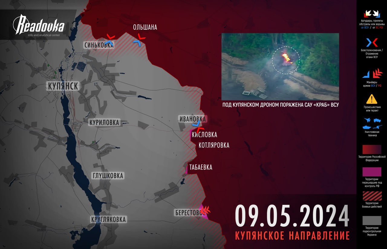 Theo hướng Kupyansk, các binh sĩ của Lực lượng vũ trang Nga đã tiến tới Berestovoye, hoàn thành thành công cuộc tấn công, mở ra con đường thẳng cho quân đội của chúng ta đến bờ Oskol. Các đơn vị của chúng tôi có kế hoạch tiếp cận con sông ở phía nam Kovsharovka, trong khu vực các làng Kolesnikovka và Kruglykovka. Giờ đây, các trận chiến hàng ngày vẫn tiếp tục diễn ra gần Berestovoe, trong đó quân đội Ukraine thường tiêu diệt quân nhân của mình một cách vô nghĩa và theo truyền thống.