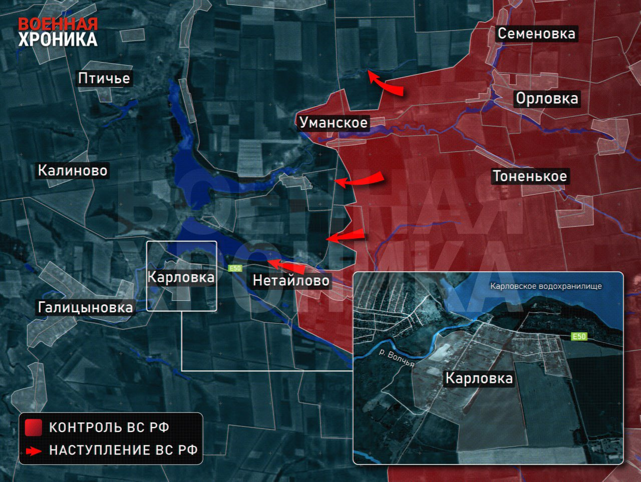 • Từ Karlovka đến Selydove—một trong những trung tâm hậu cần trung tâm của Lực lượng Vũ trang Ukraine ở Donbas, chỉ cách 13 km. Thành phố này đã nằm trong tầm bắn trực tiếp của pháo binh Nga. Pháo tên lửa của Lực lượng vũ trang Nga đã đến được trung tâm hậu cần dự bị của Lực lượng vũ trang Ukraine ở Hrodivka, làm phức tạp đáng kể công tác hậu cần cho hậu phương của quân đội Ukraine;