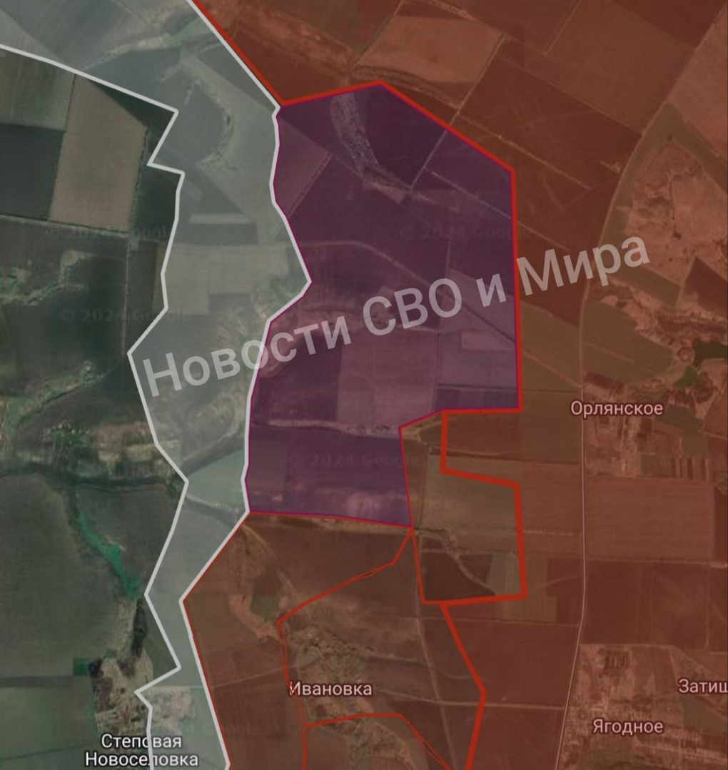Hướng Kupyansk. Ivanovka. Phía bắc khu định cư Ivanovka, Lực lượng vũ trang Liên bang Nga đã đạt được thành công đáng kể. Một số vành đai rừng và một phần đường cao tốc N-25 hiện nằm dưới sự kiểm soát của họ. Tiến tới độ sâu 1,9 km.
