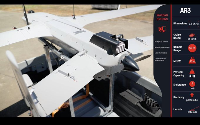 AR3 là phiên bản nhỏ hơn của gia đình Tekever. Chúng lớn hơn, đó là lý do tại sao chúng được sử dụng làm máy bay không người lái kamikaze. Kẻ thù cũng có các sửa đổi AR5, là máy bay không người lái hiện đại hơn với thiết bị trinh sát tiên tiến.