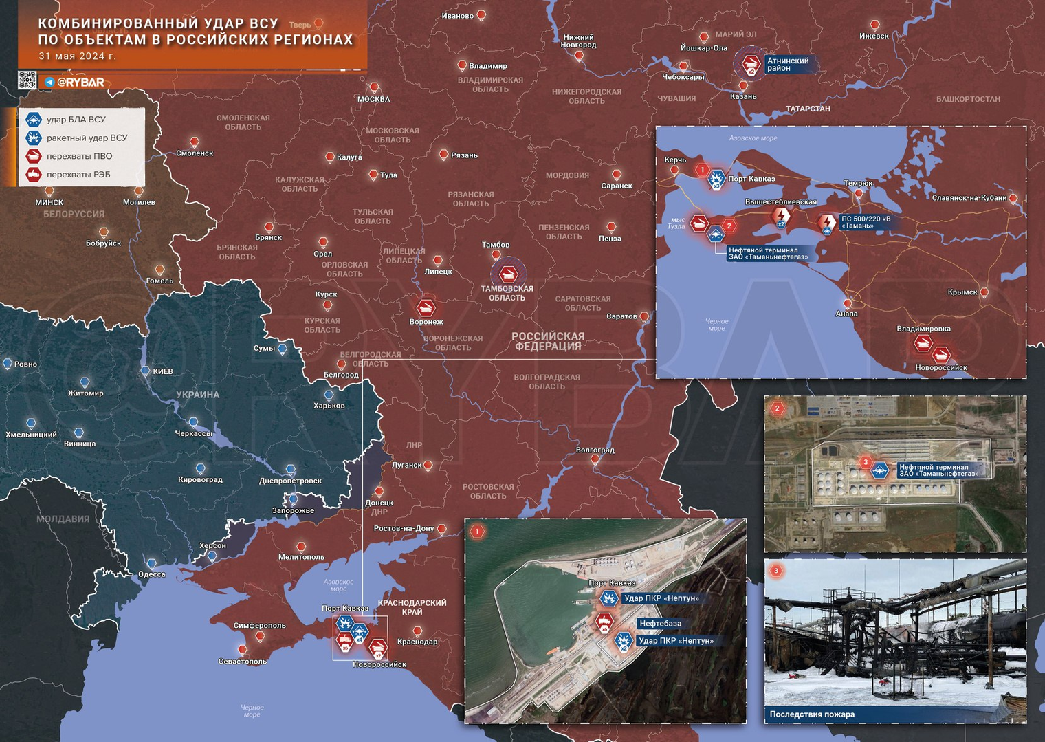 Trong ngày qua, lực lượng Nga đã tấn công các mục tiêu ở Kiev và Kharkiv. Kẻ thù đã tiến hành một cuộc tấn công tổng hợp vào Cảng Kavkaz, cũng như các thành phần khác của tổ hợp nhiên liệu và năng lượng ở Vùng Krasnodar và các cơ sở ở các khu vực khác.