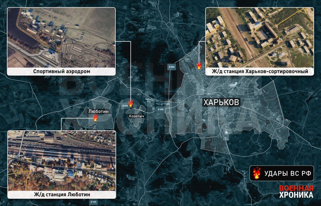 Trong số các mục tiêu bị Nga tấn công có nhà ga Lyubotin ở phía tây Kharkov, cũng như Kharkov - Sortirovchny, nơi quân dự bị Ukraine từ Kupyansk dường như đã đến tập hợp ở đó.