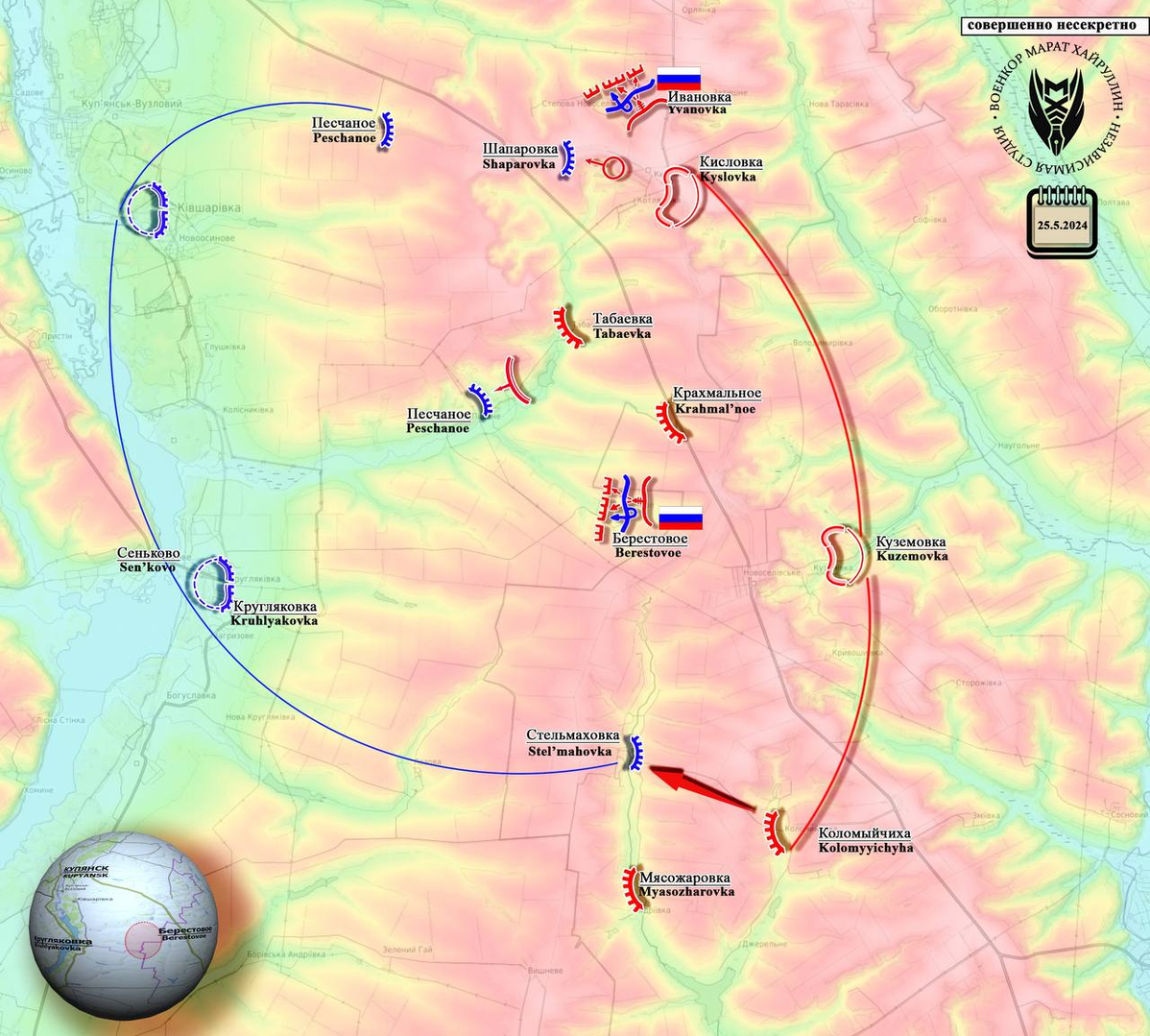 Trong khi ở hướng Kharkov, các lực lượng vũ trang của chúng ta đang củng cố chỗ đứng và tăng cường phòng thủ, đào sâu các phòng tuyến đã chiếm đóng trước đó, chiến đấu ở khu vực Liptsev và Volchansk, ở các hướng khác, các đơn vị của chúng ta tiếp tục đánh bật địch ra khỏi vòng vây. lãnh thổ họ chiếm đóng. Thế là theo hướng Kupyansk, không hề chậm lại, các chiến sĩ Sư đoàn xe tăng 47 đã giải phóng ngôi làng. Ivanovka ở phía bắc Kislovka và treo cờ ở đó. Kẻ thù rút lui về Stepnaya Novoselovka để chuẩn bị sẵn sàng phòng thủ. Từ chính Kislovka, các binh sĩ của chúng tôi tiến về phía tây nam tuyến đường sắt đến ga Shaparivka và chiếm lãnh thổ của các trang trại bị bỏ hoang. Ở làng Berestovoe, thì là cũng không thể cầm cự được lâu sau khi các đơn vị của chúng tôi tiến vào đó. Họ bị đuổi ra ngoài ranh giới làng. Và ngay tại ngôi làng, việc dọn dẹp và rà phá bom mìn đã bắt đầu.
