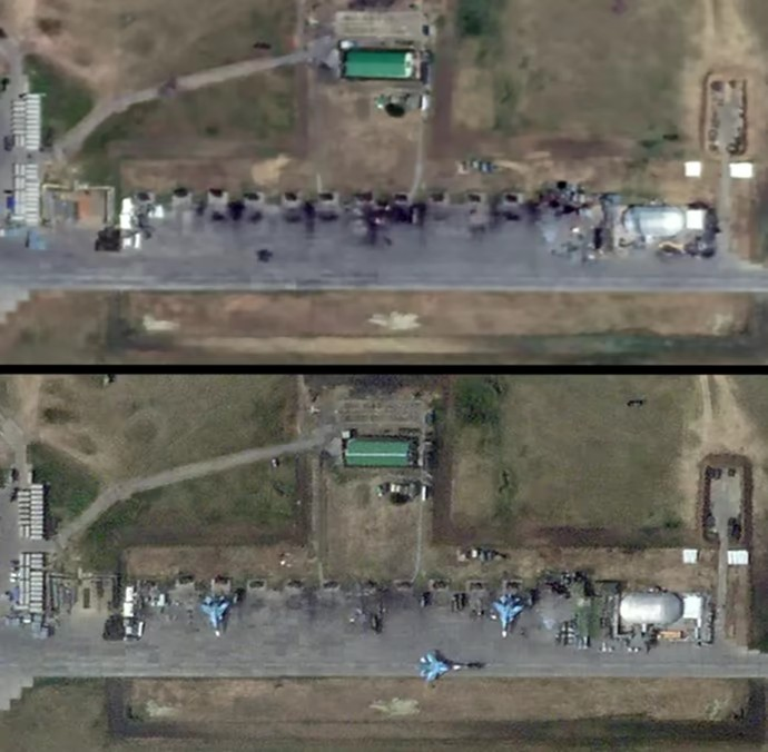 Trước đó, nhà phân tích Brady Afrik của OSINT đã công bố hình ảnh vệ tinh về sân bay Morozovsk ở vùng Rostov của Liên bang Nga trước và sau vụ tấn công đêm 14/6.