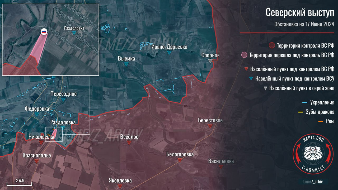 🇷🇺 RFAF tiến về phía Tây Razdolovka. Các đội tấn công của Nga đã di chuyển hơn 600 m và đến vùng ngoại ô phía tây của khu định cư gần giao lộ đường sắt ở lối vào phía tây của nó.