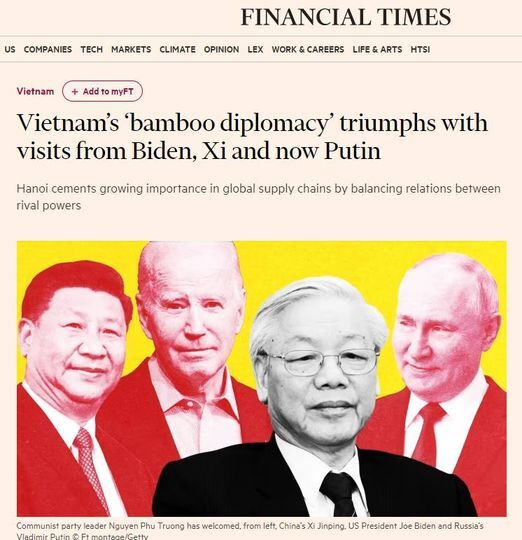 Hà Nội đã có bước đi nhằm củng cố tầm quan trọng ngày càng tăng của họ trong chuỗi cung ứng toàn cầu bằng cách cân bằng mối quan hệ giữa các cường quốc đối thủ. Trong chín tháng qua, Việt Nam đã tiếp đón Joe Biden, Tập Cận Bình và giờ đây là Vladimir Putin, dường như họ đã tự cân bằng được đối với những sự cạnh tranh địa chính trị bằng một thế lực khác, điều mà các quốc gia khác đã tránh.