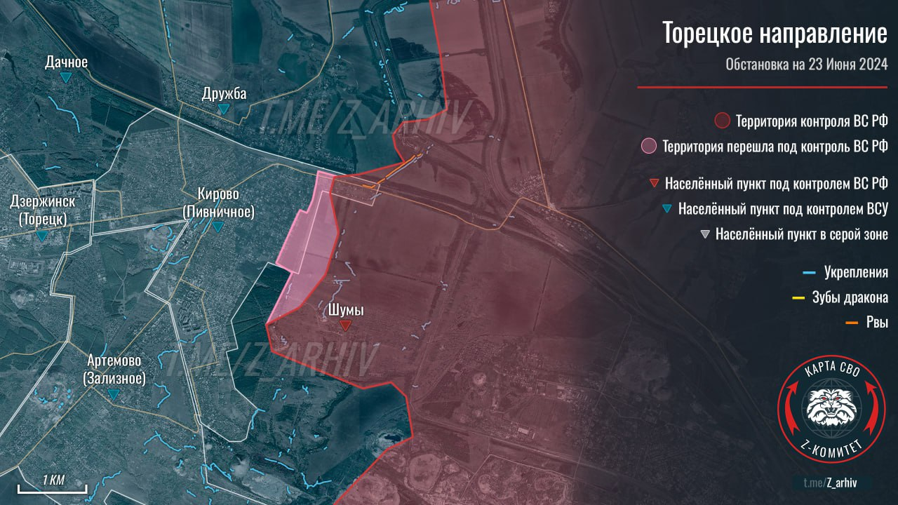 Hơn nữa, ở phía nam, làng Shumy nằm dưới sự kiểm soát của Lực lượng vũ trang Nga, nhưng tình trạng của một số cuộc đổ bộ lên phía bắc vẫn chưa rõ ràng.