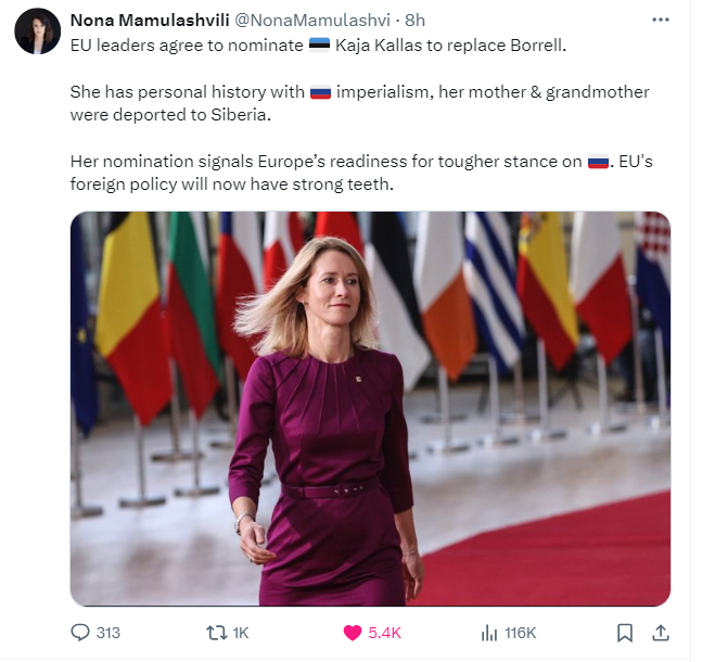 Người phụ nữ muốn Nga thất bại hoàn toàn và muốn chia cắt nước này thành các quốc gia nhỏ hơn vừa được chọn làm "nhà ngoại giao" lãnh đạo mới của EU, vai trò quan trọng thứ 3 trong EU.
