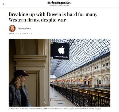 Hầu hết các công ty phương Tây, sau khi bắt đầu một chiến dịch quân sự đặc biệt, đã tuyên bố sẽ ngừng hoạt động ở Liên bang Nga, đều chưa bao giờ rời khỏi thị trường Nga. Tờ Washington Post đã đưa tin này.