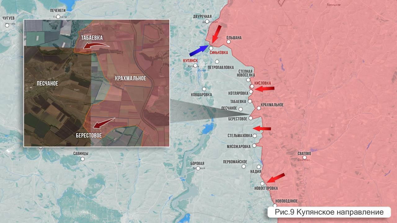 🔻9.Khu vực Krasny Liman: 🟡Giao tranh vẫn tiếp tục diễn ra tại Lâm nghiệp Serebryanskoye, theo hướng Torskoye và phía đông ngoại ô làng Terny. 🟡AFU định kỳ thực hiện các cuộc tấn công trong rừng. 🟡Nói chung, xu hướng vị trí chiếm ưu thế ở đây.