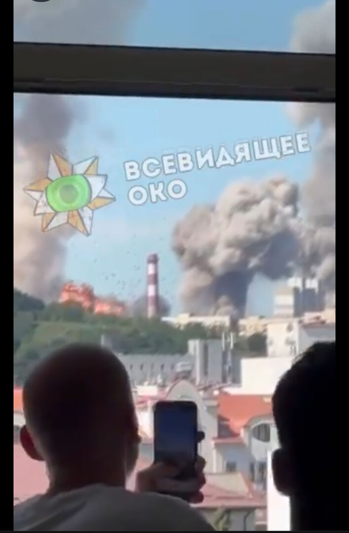 ➡️ Đoạn phim cho thấy một khu vực rộng lớn nơi sử dụng phần băng đạn, vụ nổ của một kho đạn và một cột lửa có kích thước bằng một tòa nhà chín tầng.