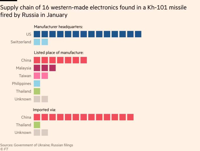 🇨🇳 Bài báo cũng cho biết rằng vào năm 2023, các công ty Nga đã có thể có được các bộ phận giống hệt với những bộ phận được sử dụng trong X-101 vào tháng 1 "chỉ bằng cách mua chúng trên thị trường mở và nhập khẩu qua Trung Quốc".