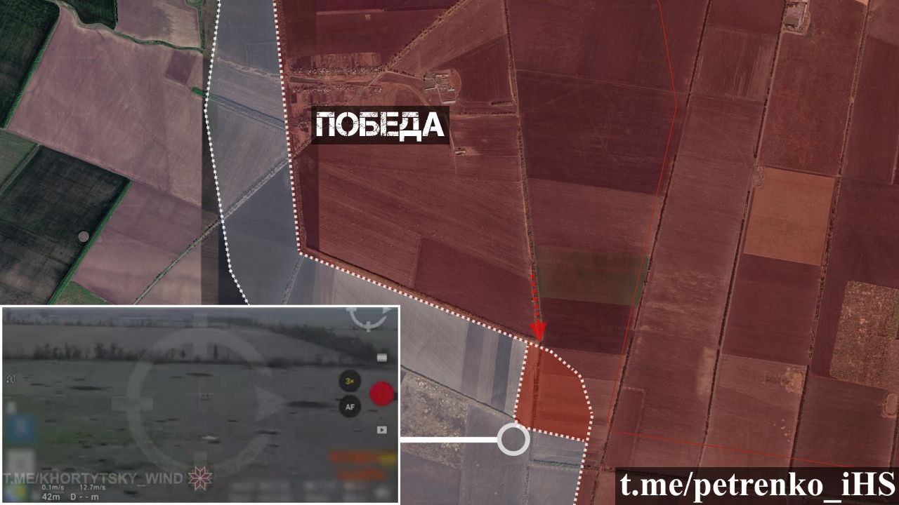 ▪️"Tại Pivnichny (Kirovo), giao tranh vẫn tiếp diễn dọc theo đường Sotsgorodok và Yunosti. Phía đông ngôi làng, Lực lượng vũ trang Ukraine đang cố gắng phản công bộ binh Nga ở ngoại ô cuộc đổ bộ 📍48.38857, 37.92372"