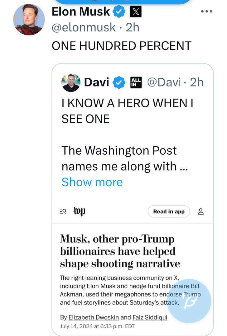 Tờ Washington Post nêu tên tôi cùng với @elonmusk là một trong số nhiều doanh nhân đang sử dụng “cái loa” của mình để truyền bá “những câu chuyện” về vụ ám sát Tổng thống Trump.