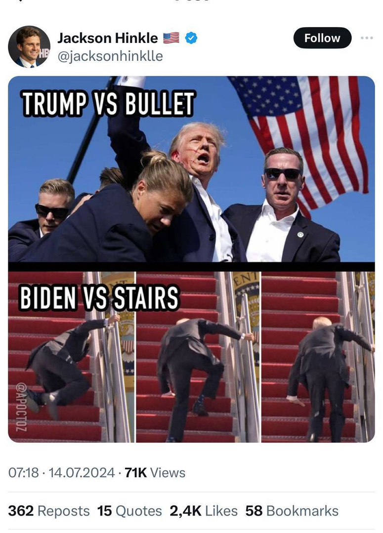 1. Trump bị hạ sát thật, ông ta không hề biết bị ngắm bắn bởi 1 tay bắn tỉa nào đó. Ông ta thoát chết hoàn toàn do thần may mắn vì không một vụ cờ giả nào mà xác suất trở thành cờ thật nhiều như vụ này. Xâu chuỗi quá khứ thì Trump đã có nhiều tuyên bố và hành động phá thế của giới tài phiệt khi chúng đang lên kế hoạch khống chế nước Mỹ và cả thế giới. Nhìn lại vụ TT John Kennedy, ông muốn nước Mỹ tham chiến ở Việt nam chỉ dưới dạng cố vấn chứ không đưa quân dội trực tiếp trên chiến trường và giành lại quyền in tiền từ Fed. Ông đã bị hạ sát mà không có may mắn như Trump.