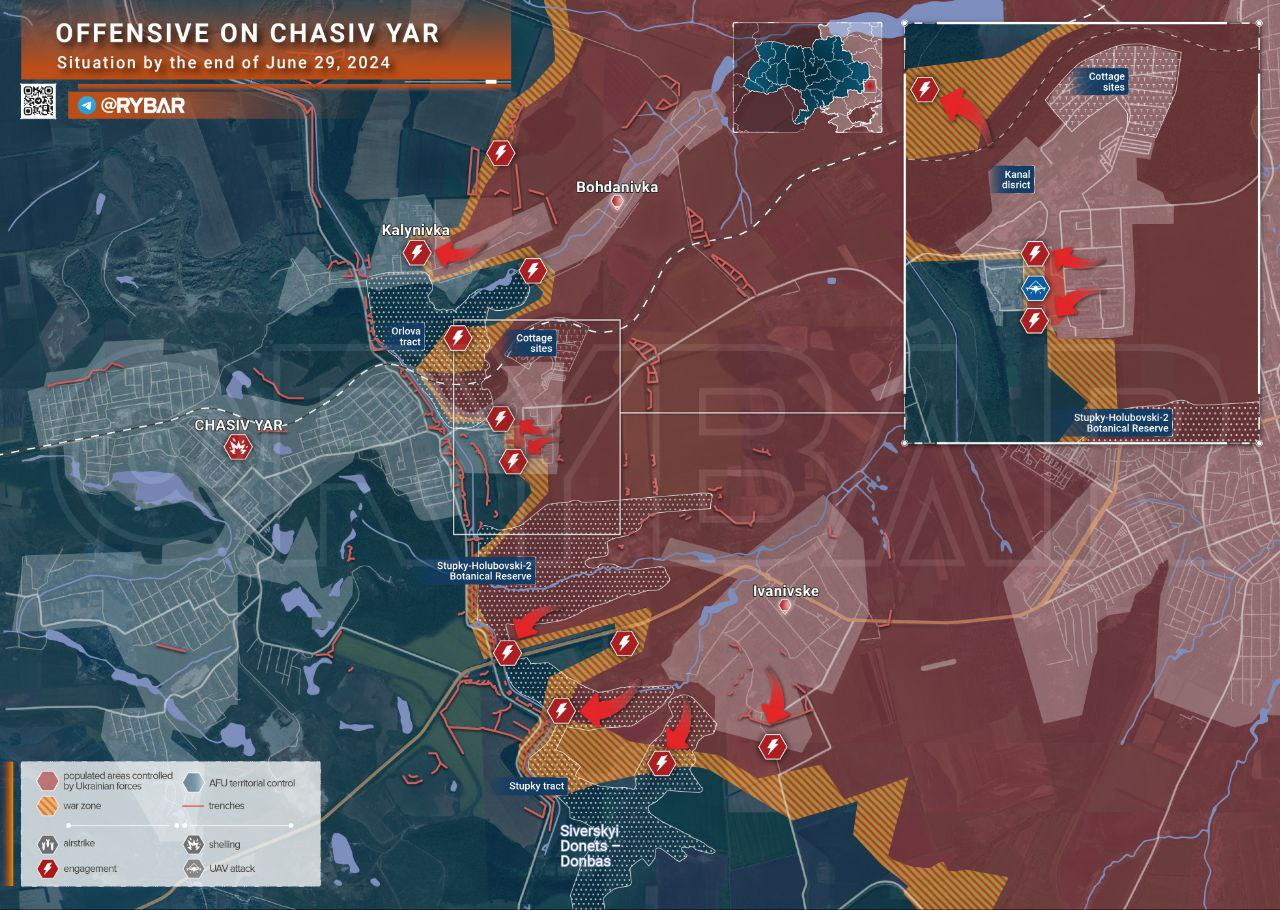 Tình hình ở Chasok Yar, quân ta tiến quân thuận lợi theo nhiều hướng. Quân đội Nga chiếm thêm vài khu phố ở tiểu quận Kanal. Quá trình giải phóng Kalynivka vẫn đang được tiến hành. Quá trình chinh phục cái boomerang Chasok Yar là một quá trình lâu dài. Tuy khó khăn nhưng thành quả sẽ vô cùng xứng đáng.