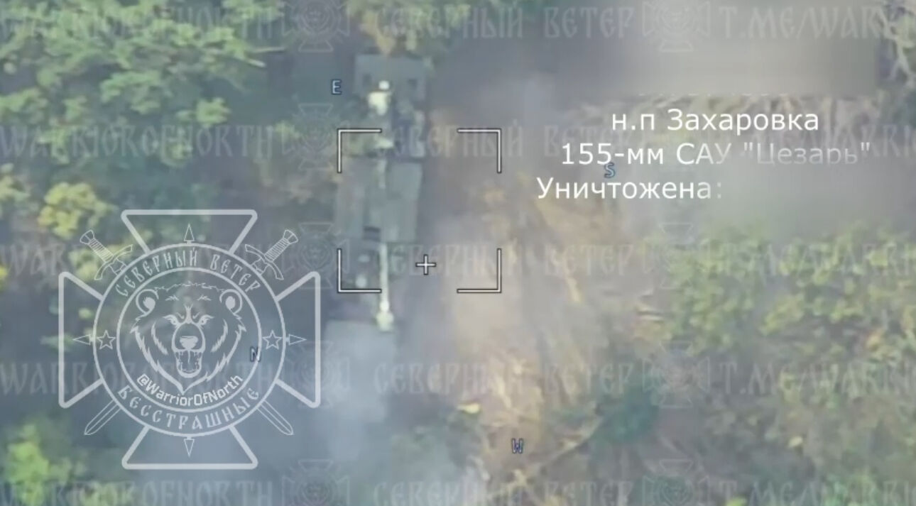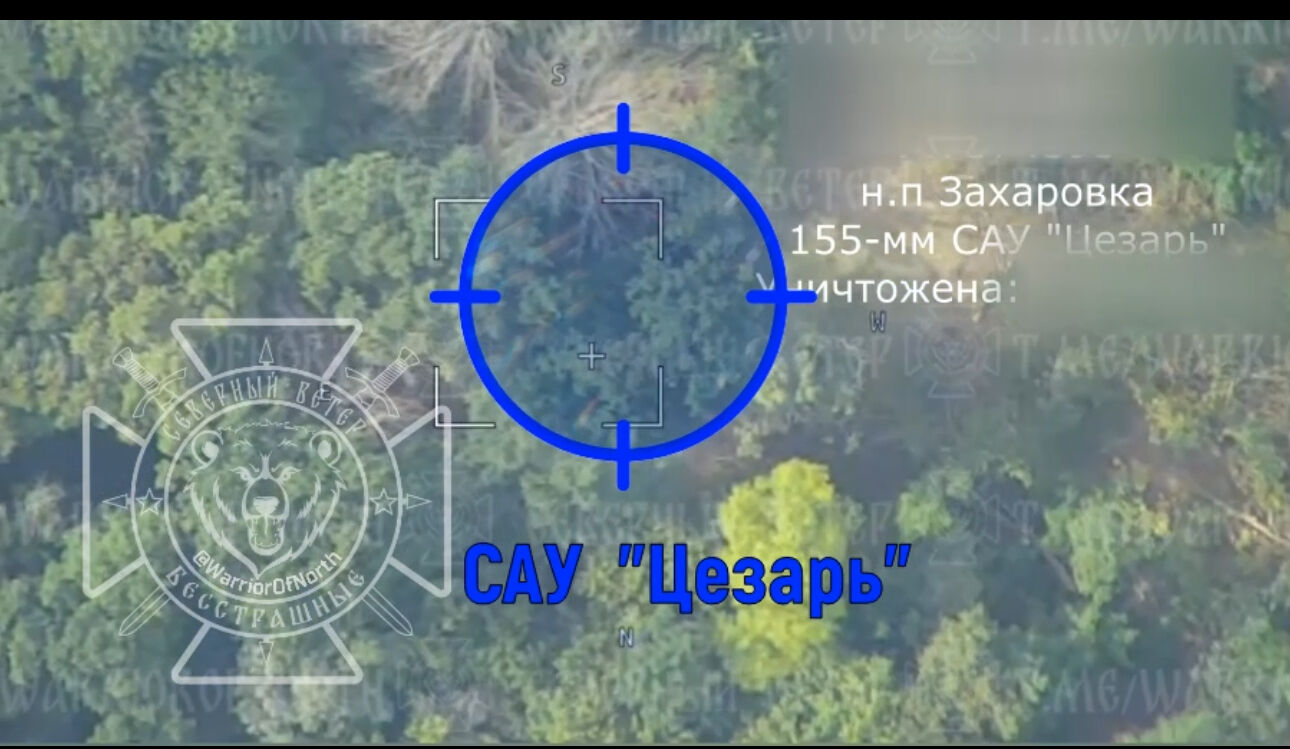 #CAESAR #Kharkov #Lancet Đoạn phim ghi lại cảnh phá hủy pháo tự hành bánh lốp (được cho là) CAESAR của Lực lượng vũ trang Ukraine tại khu vực Zakharovka, hướng Kharkov