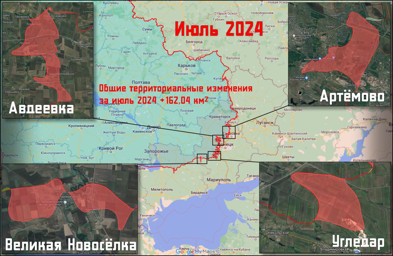 📌 Thay đổi lãnh thổ chung cho tháng 7 năm 2024 +162,04 km² hoặc +5,23 km² mỗi ngày trung bình.