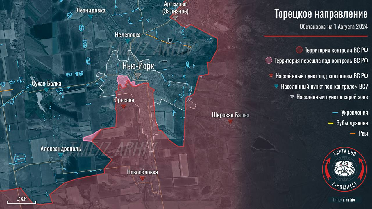 🇷🇺 Các đội tấn công RFAF, sau những thành công trước đó, tiếp tục tiến quân ở New York. Về phía tây nam của Yuryevka, họ di chuyển xa hơn về Aleksandropol (Rozovka) theo hướng tây.