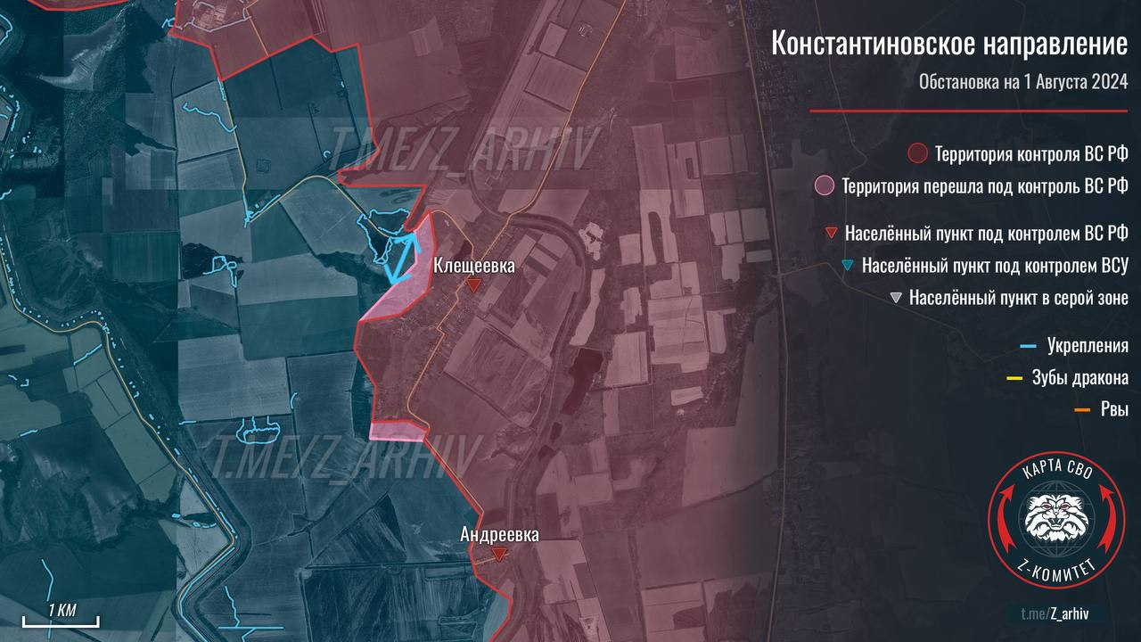 ⚡️ 🇷🇺🇺🇦⚔️ Bản đồ Khu vực chiến dịch quân sự đặc biệt của Nga ở Ukraine ngày 1 tháng 8 năm 2024⚡️