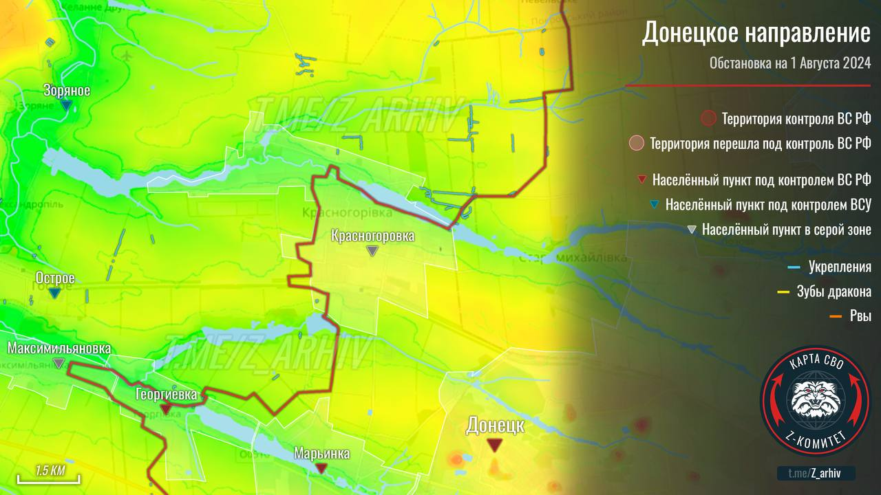 🔴 Tại Krasnogorovka, họ đã kiểm soát hoàn toàn khu vực trung tâm của thị trấn, tiến đến Maksimilyanovka và phía nam Georgiyevka +6,0 km²