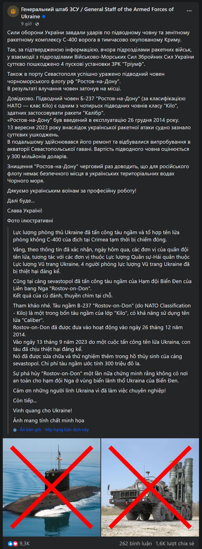 Nhưng với bản tính làm màu chuyên nghiệp như Ukr lên kế hoạch (chắc cũng mất vài tuần đến vài tháng) đánh chìm thành công tàu ngầm 300 củ Biden ở bán đảo Crimea mà không có video với ảnh chụp 4K soi rõ từng gợn sóng thì nghe có vẻ hơi ảo. Có mỗi 2 cái ảnh "mang tính chất minh họa" đúng như bài đăng của Ukr thấy hơi bị lấn cấn. Cho nên em nghĩ có 2 giả thuyết sau: 1. Tàu ngầm Rostov-on-Don đã sửa chữa xong và đi vào hoạt động, nó lặn đi đâu thì ông Ukr cũng đếch biết nhưng thấy nó biến mất khỏi mặt nước thì cứ đăng tin cho sướng mồm đã. Sau này Nga nó có đăng ảnh đính chính thì cùng lắm Ukr lại xếp cái tin này vào dạng "lỡ mồm".