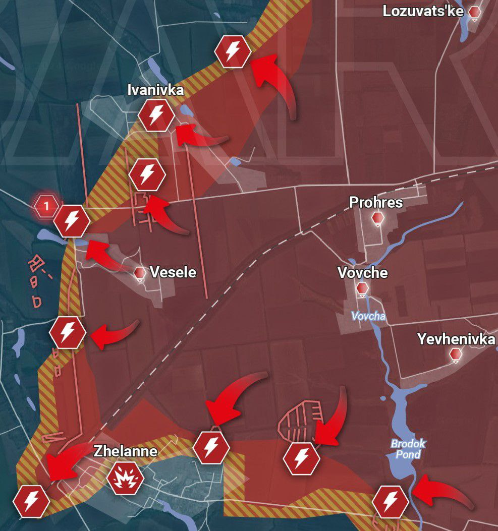 trong một diễn biến bất ngờ, hôm nay lính Ukraina bỏ chạy khỏi một loạt con đường khu phố ở Pivnichne, điều này đã giúp quân ta tiến liền một mạch, giải phóng một vùng lãnh thổ rộng lớn đến đường Kalynova. Đồng thời hướng Druzhba cũng đánh đến đường Kosmosmavtiv.