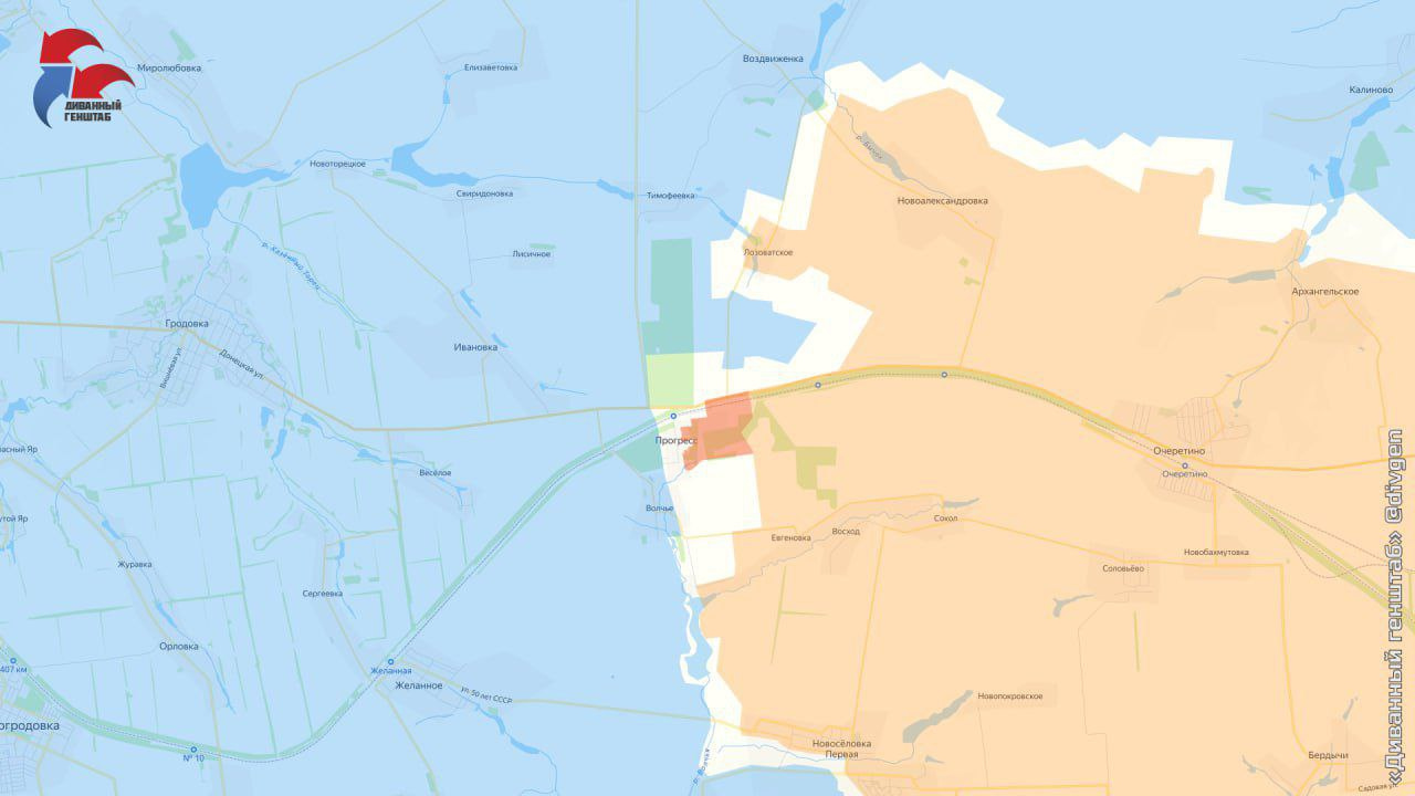 * Theo hướng Avdiivka, quân Nga cũng tiến quân đáng kể và chiếm được làng Prohres. Đồng thời, người Nga đang tiến xa hơn về phía nam ở Novoselivka Persha.