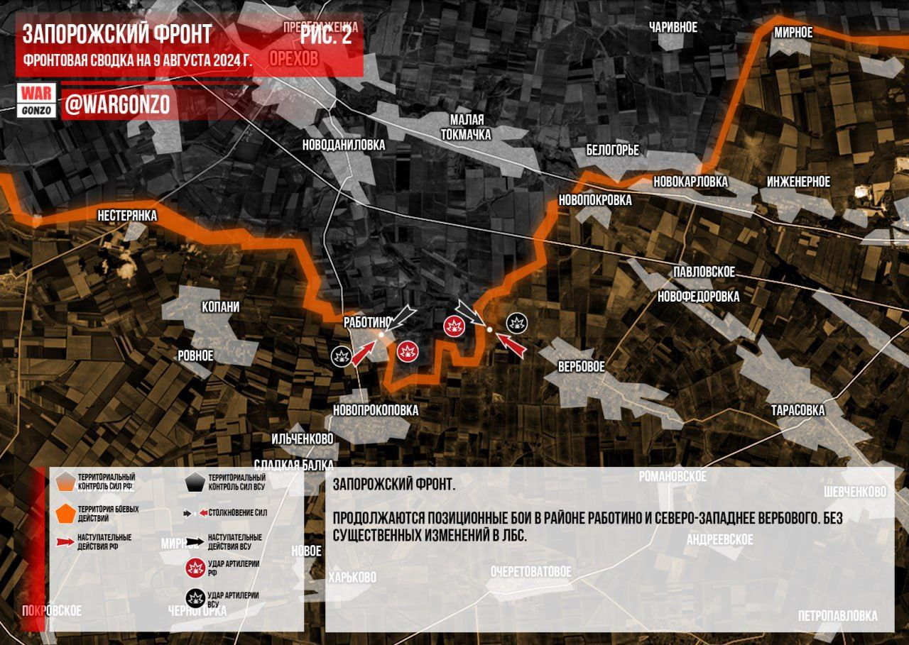 🔴Trên Mặt trận #Zaporozhye, giao tranh theo vị trí vẫn tiếp diễn ở khu vực Rabotino và phía tây bắc Verbovoye. Không có thay đổi đáng kể nào ở tuyến liên lạc. (Hình 2)