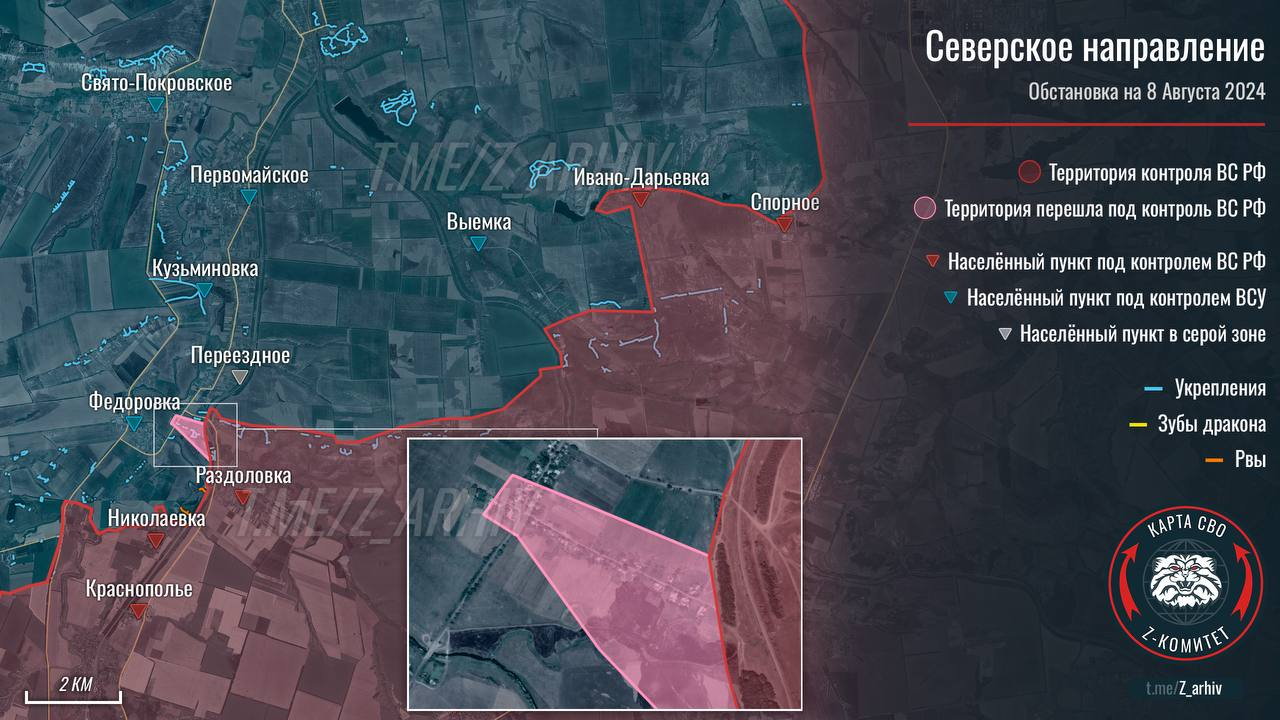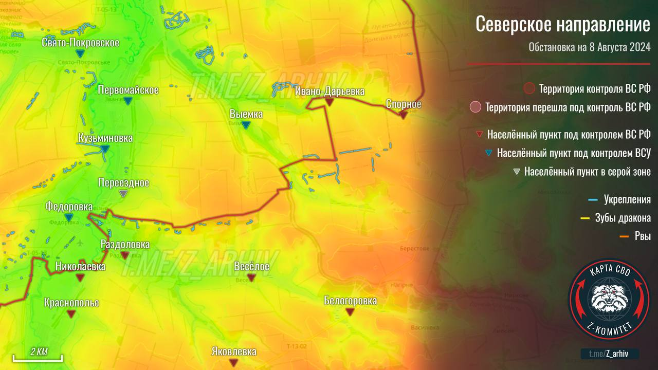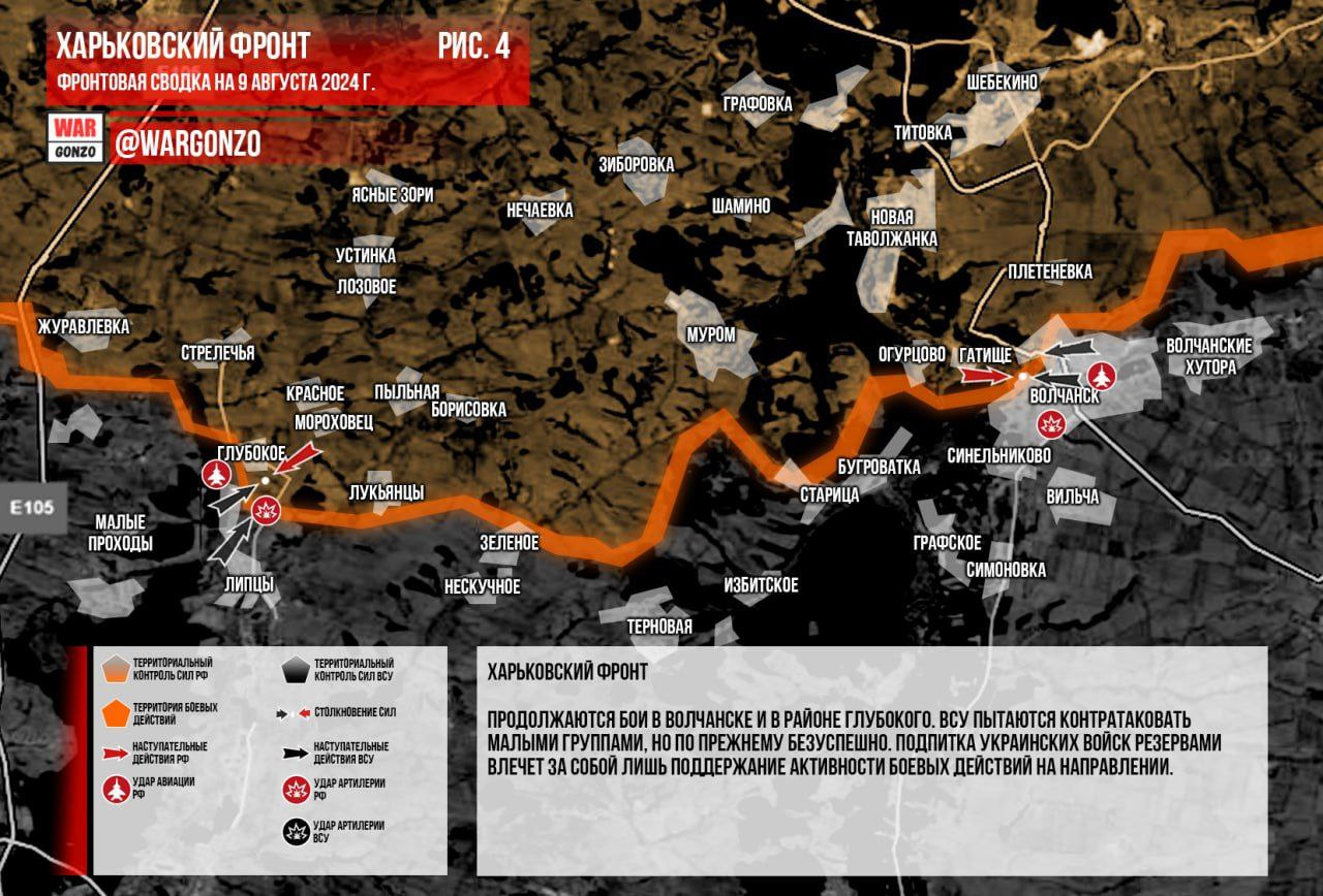 Chính các đơn vị đột kích đã tham chiến, hầu hết được trang bị xe bọc thép hạng nhẹ và được hỗ trợ bởi máy bay không người lái, có nhiệm vụ đồng thời chiếm càng nhiều lãnh thổ càng tốt. Sáng sớm nay đã có báo cáo rằng có thêm một số đơn vị bộ binh của Lực lượng vũ trang Ukraine được đưa tới để tiến vào khu vực Kursk và họ chỉ cố gắng giành được cũng như củng cố vị trí trên các phòng tuyến đã tạm chiếm được. Điều ấy không có nghĩa là Lực lượng vũ trang Ukraine đã ngừng nỗ lực đột phá về phía bắc, theo hướng Nhà máy điện hạt nhân Kursk, mà cùng với các báo cáo về việc lực lượng dự bị của Lực lượng vũ trang Nga đã bắt đầu đến và triển khai chiến đấu từ ngày hôm qua, tình trạng “đầu hàng” ảo của các khu vực đông dân cư (lan truyền như những tin đồn) cũng đã không còn. Điều đó cho thấy chiến tuyến của mặt trận đã là khá ổn định.