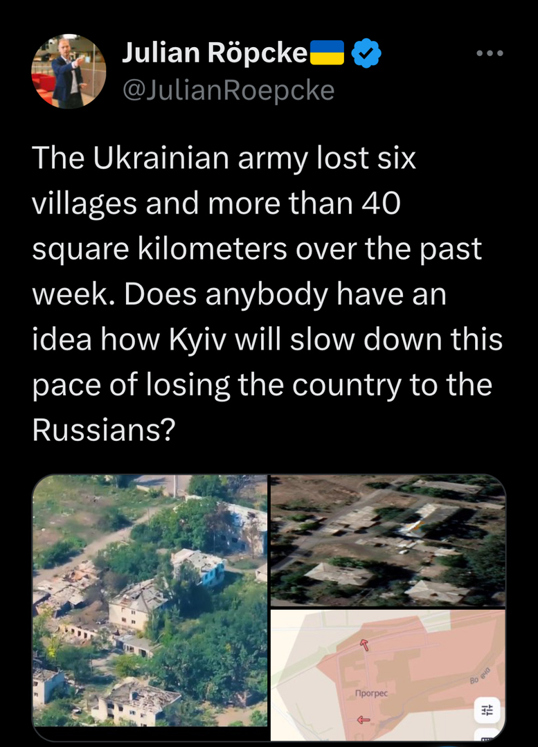 Quân đội Ukraine đã mất sáu ngôi làng và hơn 40 km vuông trong tuần qua. Có ai biết Kiev sẽ làm chậm tốc độ mất đất nước này vào tay người Nga như thế nào không?