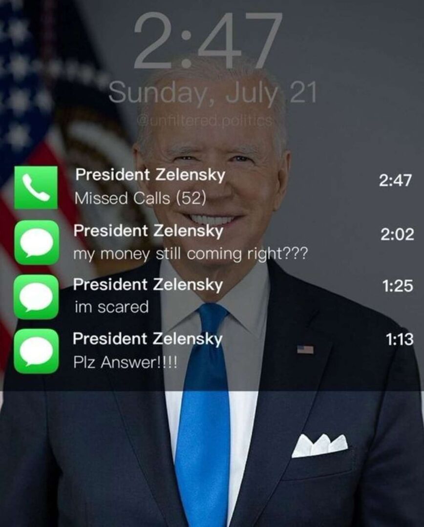 Ảnh chụp màn hình được cho là cho thấy Biden đang mỉm cười và ba tin nhắn SMS từ “Tổng thống Ukraine ”: