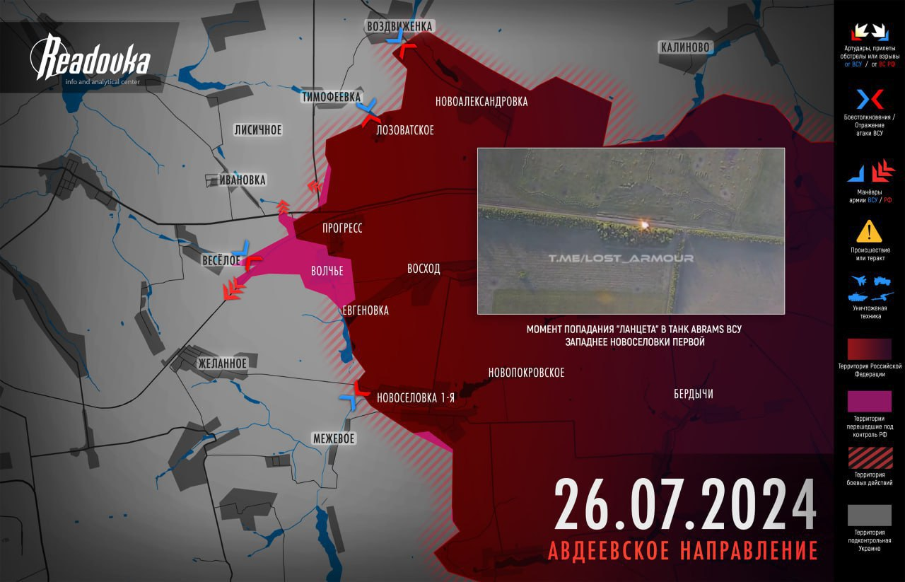 Lực lượng vũ trang RF đã giải phóng Volchye, các chiến binh của Lực lượng vũ trang Ukraine cuối cùng đã rơi vào một “cái vạc” ở phía bắc Tiến bộ - tình hình theo hướng Avdeevsky vào cuối ngày 26 tháng 7