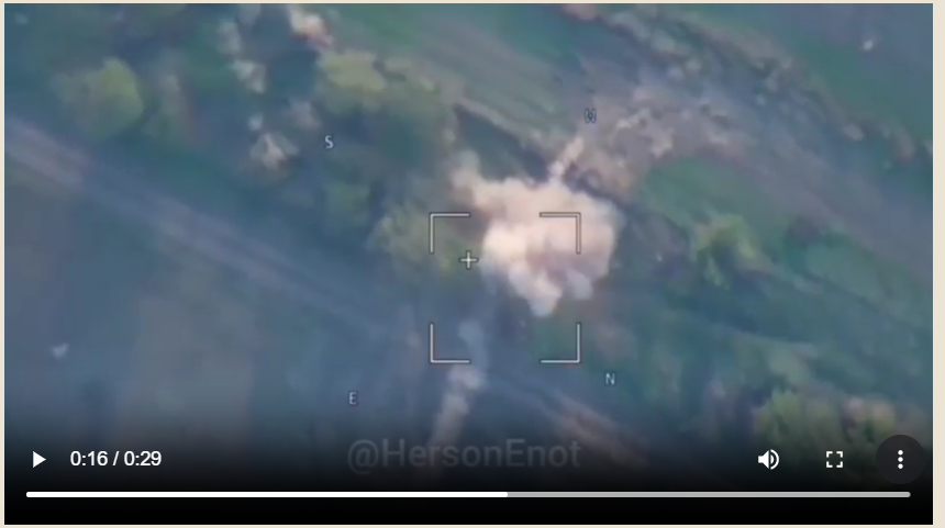 [Vừa bắn được một trái thì tăng Ukraine bị Lancet vồ trúng- đã bị nó bay lảng vảng rình từ trên cao.