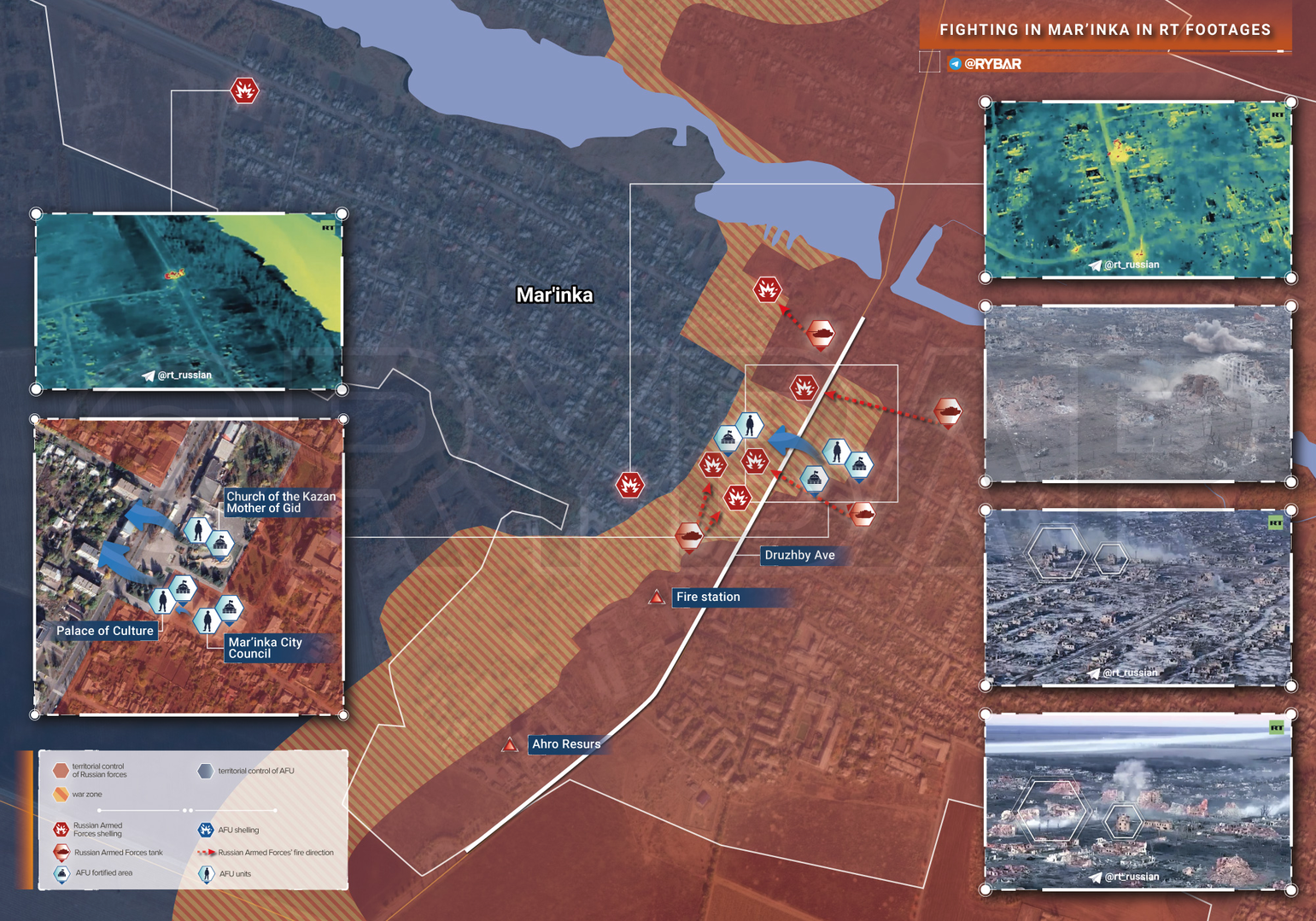 Russia Today đã công bố một số báo cáo của sĩ quan quân đội Vlad Andritsa @vandrytsa về trận chiến ở Marinka, trong đó cho thấy rõ ràng bước tiến của lực lượng Nga trong khu vực Druzhby Prospekt.