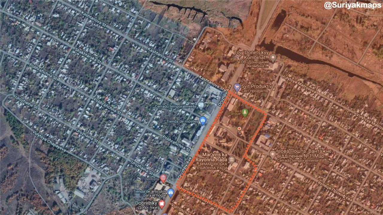Tình hình phía tây thành phố Donetsk: Lực lượng Quân đội Nga và DPR đã giành quyền kiểm soát quận trung tâm của thị trấn Marinka/Мар'їнка và cùng với đó là tất cả các vị trí ở phía đông Đại lộ Druzhby.