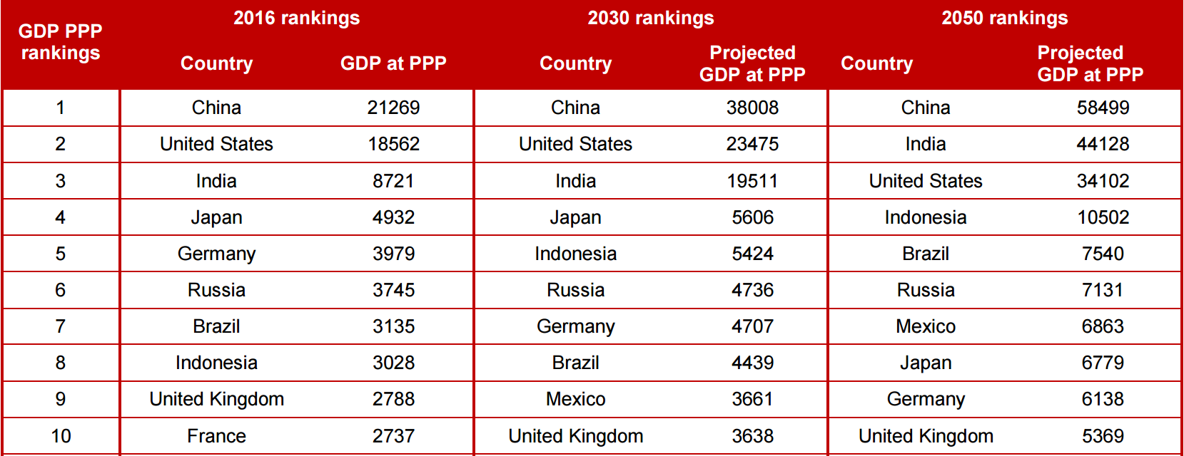Cuối cùng là em nghĩ nhiều cụ vẫn chả tin Ấn nó lên siêu cường số 2 thế giới :D, nên em gửi số liệu về dự báo GDP theo PPP của bọn PWC năm 2050 cho các cụ xem nhé.