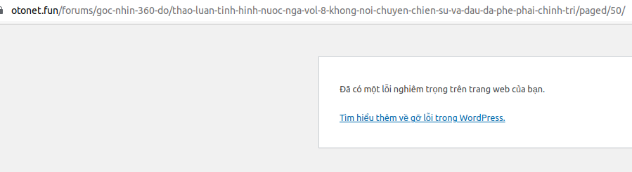 Các bác xem lại, tôi toàn bị lỗi như sau, kể cả khi vào trang chủ và click vào "diễn đàn", còn khi vào 2 topic (topic này và topic về Nga kia) thì toàn bị lỗi như sau, bây giờ mới hồi phục, nhưng chưa biết chết lúc nào,