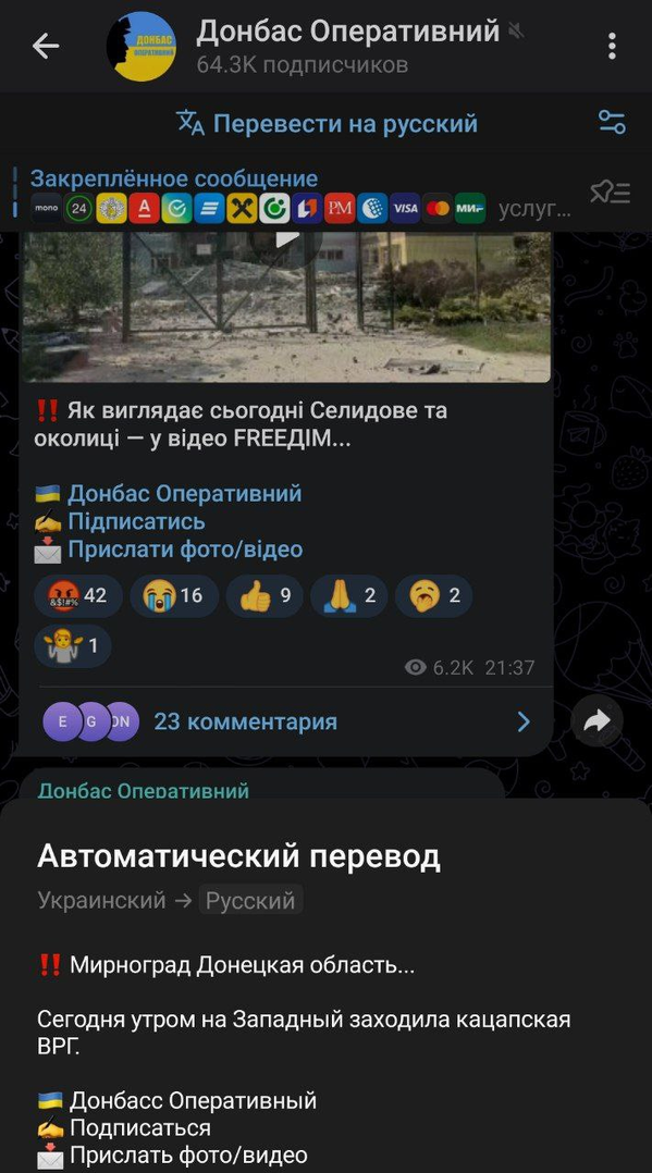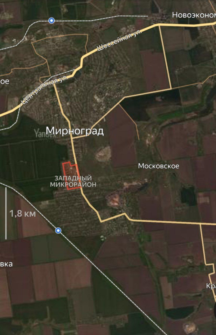 Các kênh của kẻ thù báo cáo rằng sáng nay DRG của chúng tôi đã tiến vào tiểu khu Zapadny ở Mirnograd theo hướng Pokrovsky.