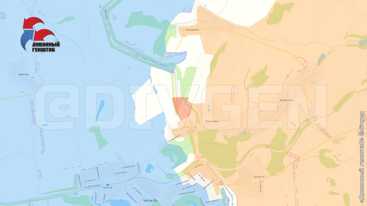 Quân đội Nga mở rộng lãnh thổ về phía bắc Kalinina ở hướng Chasok Yar. Các cụ có thể thấy phía bắc - trên bản đồ là Grigorovka đã giải phóng